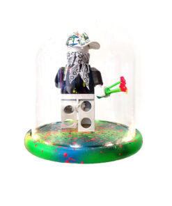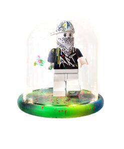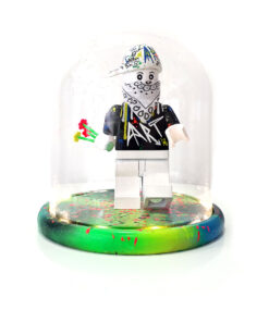 “Voici une réinterprétation en LEGO en grand format de “Rage, The Flower Thrower” célébre oeuvre de Banksy”.